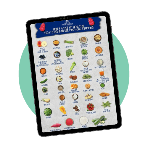 Elevate your dog's playtime with our free Kong Stuffing ideas infographic, packed with a variety of healthy and delicious treat ideas.